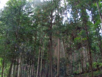 -直々とそびえる老杉を見上げつつ 精進する修行者は 跡をたたず,