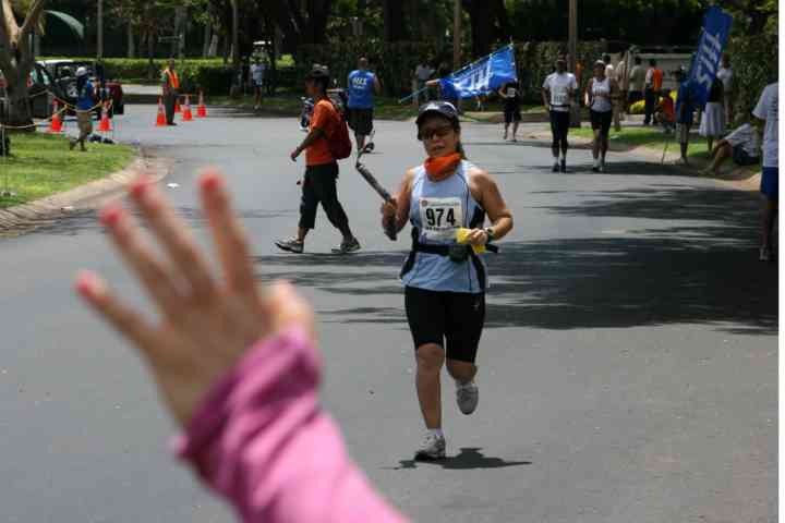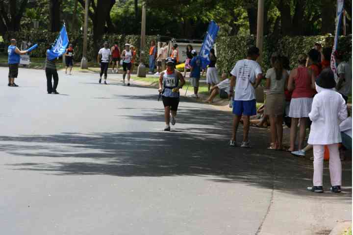 この辺りで わたしの周りのランナーは、 すべて歩いていた。